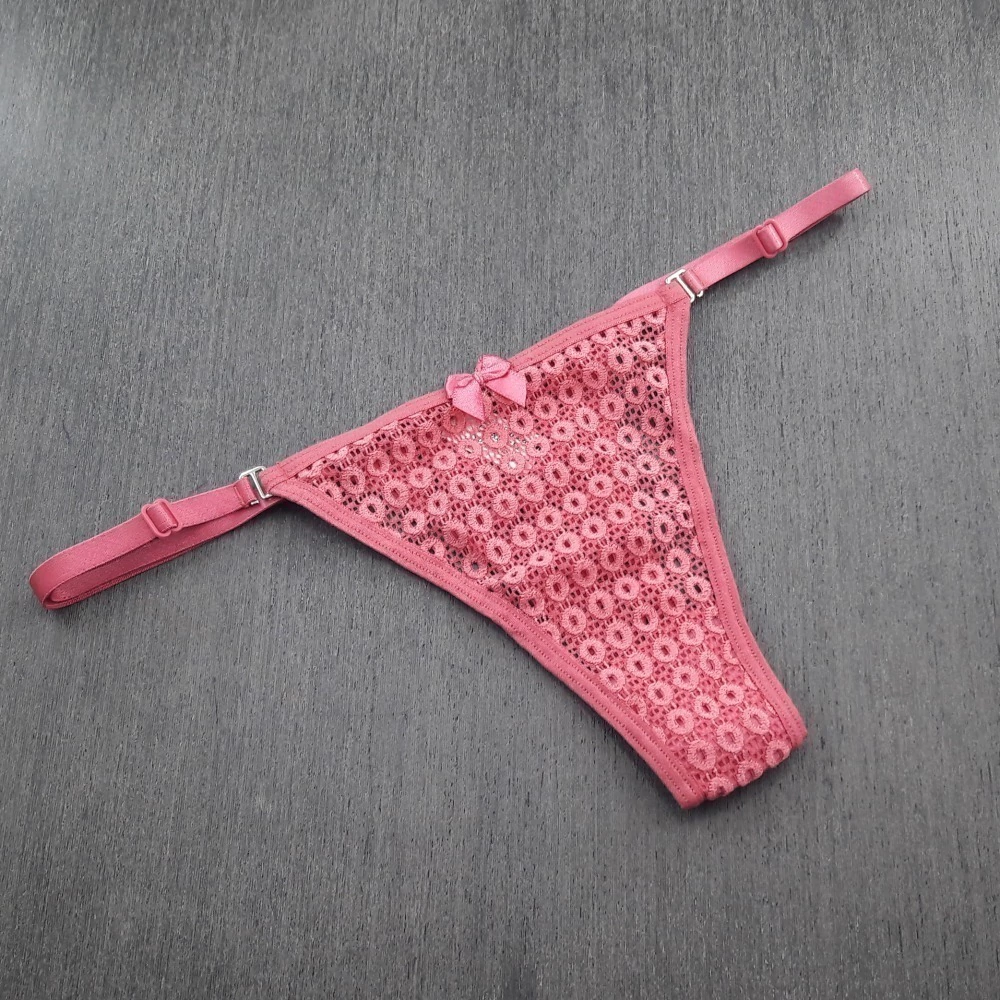 Tanga modelo fio desenvolvida em renda com fecho gancho na lateral. Peça sensual indicada para momentos especiais. Para melhor ajuste ao corpo as laterais são reguláveis.